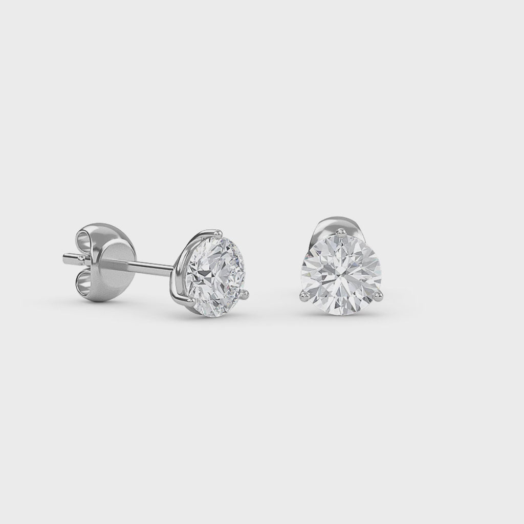 18K White Gold Three Prong Martini Round Brilliant Diamond Stud Earrings (1.00 CTW - F+ / VS1+)